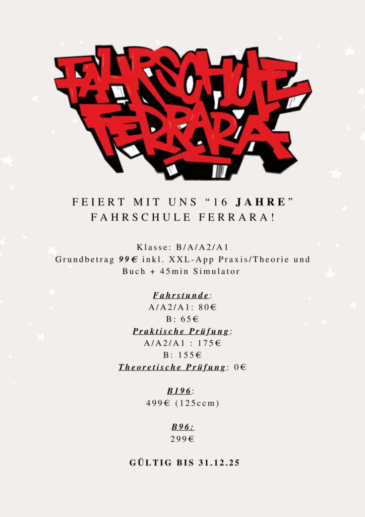 Bei uns kannst du die Fahrerlaubnis (Führerschein) der Klassen A, A2, A1, B196, AM, MOFA, B, BE, B96, C,CE, C1, C1E erwerben.